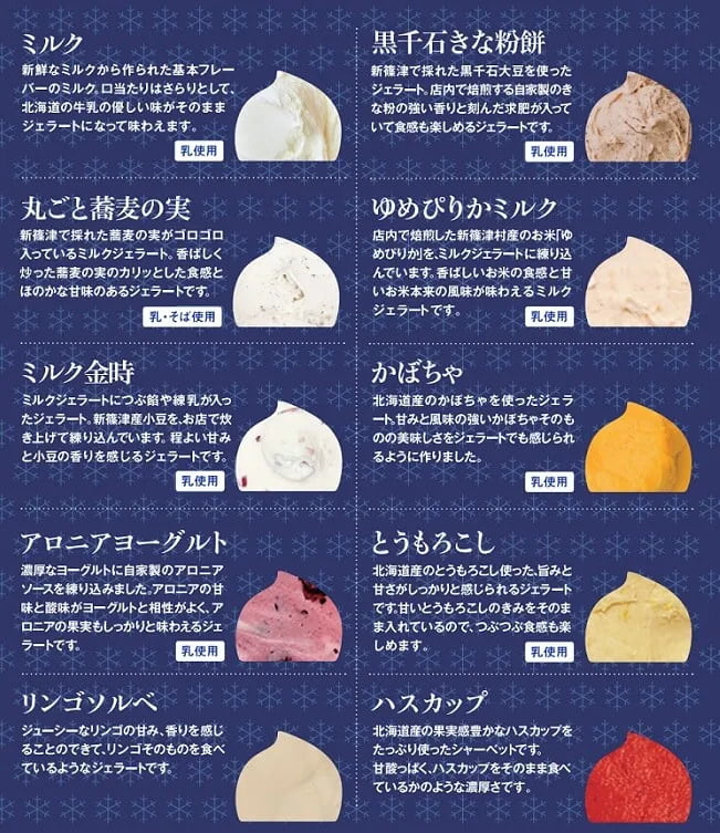 | 内容量 | ミルク・黒千石きな粉餅:120ml×各2個 丸ごと蕎麦の実・ゆめぴりかミルク・ミルク金時・かぼちゃ・アロニアヨーグルト・とうもろこし・リンゴソルベ・ハスカップ:120ml×各1個 計12個 |