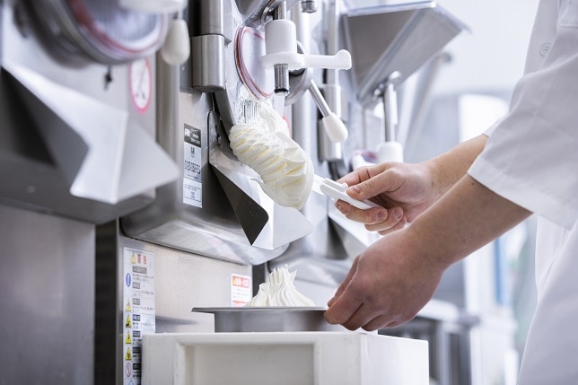 厳選した北海道産の牛乳は、新鮮なうちにミルクベースに。