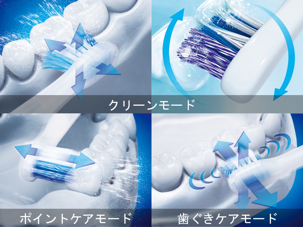3つのモードと4種類のブラシですみずみまで歯垢除去