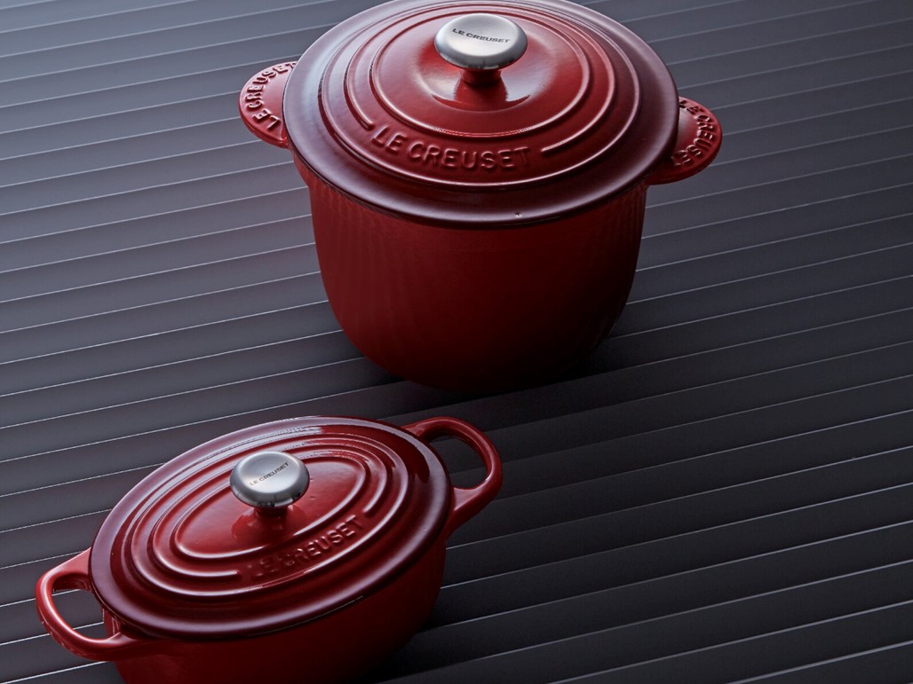 〈ル・クルーゼ〉シグニチャー ココット オーバル 17 ・ココット エブリィ 20(チェリーレッド/ステンレスツマミ)