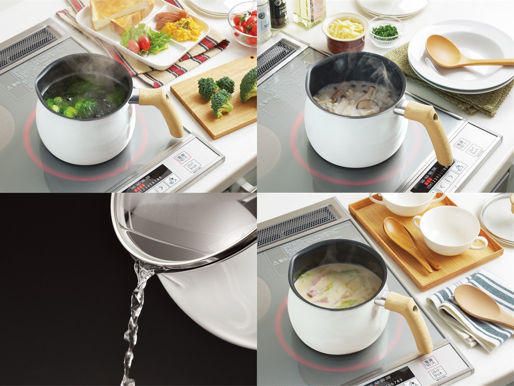 | 原材料/素材/材質 | 本体:アルミニウム合金、(内面ダイヤモンドコートふっ素樹脂塗膜加工・、外面焼付け塗装) |