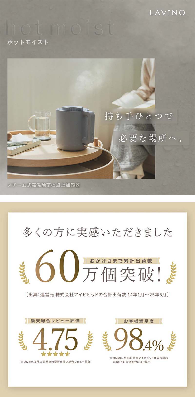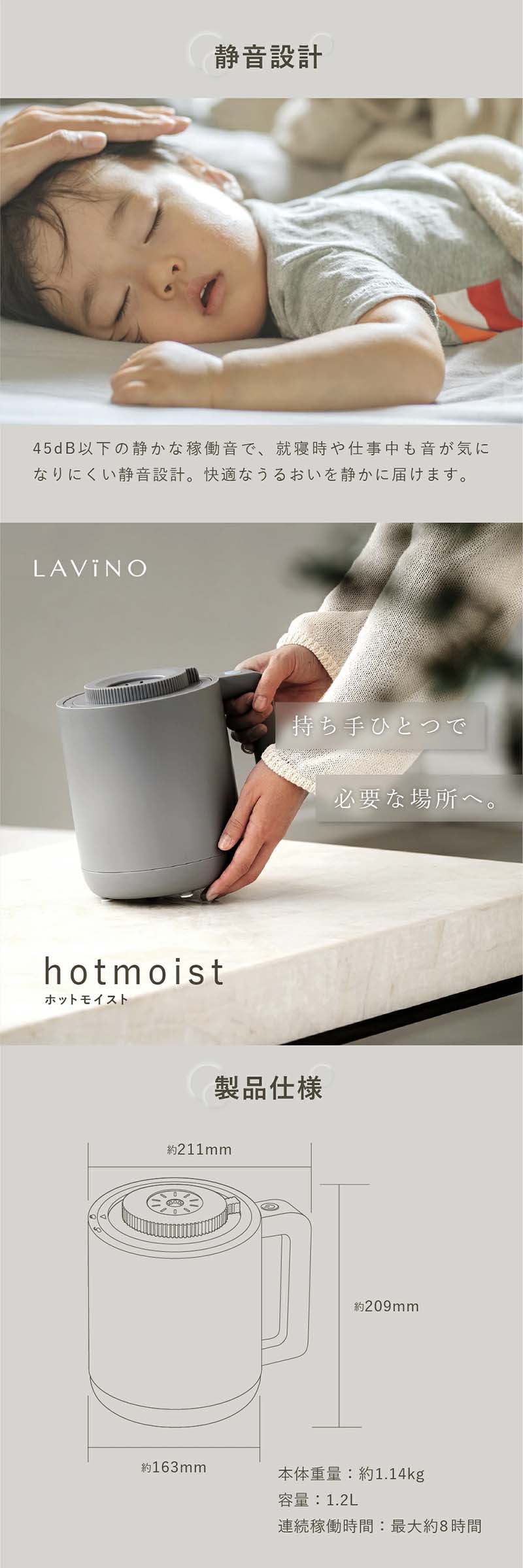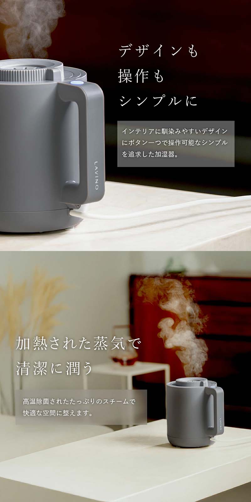 LAViNO ラビーノ ホットモイスト スチーム式 卓上加湿器 8時間連続