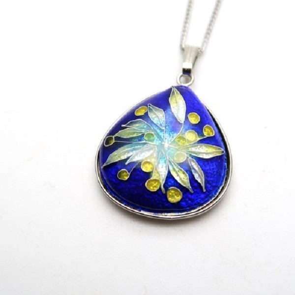 ネックレス なつめ型 純銀七宝 柳暗花明 (紺)
