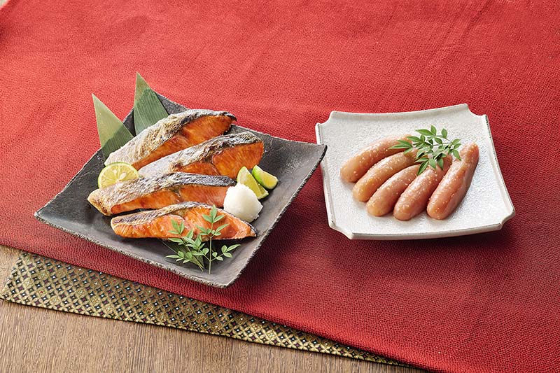 | 内容量 | 明太子150g、 紅鮭切身4切 |