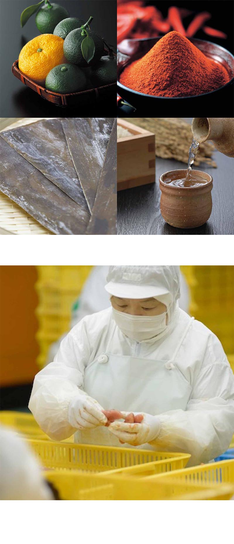 4つの素材が育むやまやこだわりの味が、素材に深く染み込んで行きます。