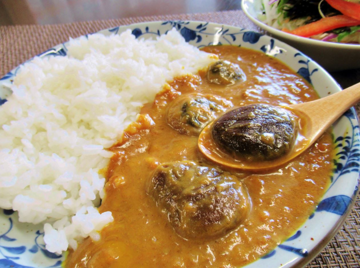 | 原材料/素材/材質 | 原材料名:椎茸、玉ねぎ・カレールウ(小麦粉・動物性油脂・カレー粉・砂糖・香辛料・その他)・豚肉・人参・植物油・発酵調味料・トマトケチャップ・砂糖・リンゴ果汁・カレー粉・しょう油・チキンエキス・野菜エキス・ガーリックパウダー/調味料(アミノ酸等)・カラメル色素・(一部に乳成分・小麦・大豆・鶏肉・牛肉・豚肉・リンゴを含む) |