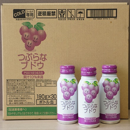 | 原材料/素材/材質 | 果糖ぶどう糖液糖(国内製造)、ぶどう果汁(ぶどう(台湾産、国産))、アロエベラ(葉肉部位使用)(タイ産)/酸味料、香料、乳酸Ca、ビタミンC、安定剤(増粘多糖類)、ブドウ色素、甘味料(アセスルファムK)、乳化剤 |