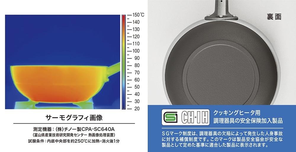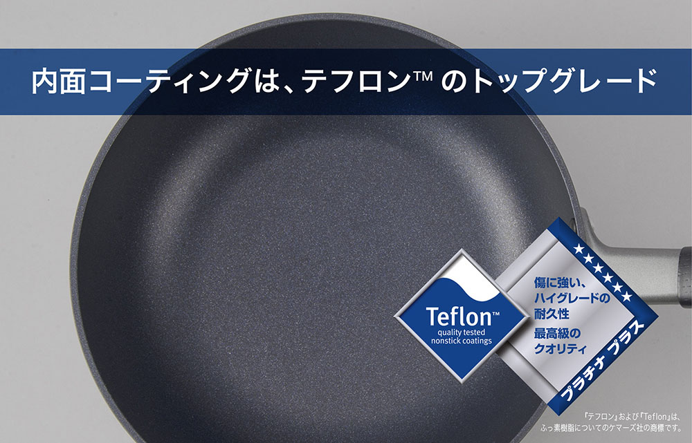 | その他詳細 3 | 内面:テフロンプラチナプラス加工 外面:ミラー仕上げ、セラミック耐熱塗装(グレー) 底面:鉄・アルミニウム溶射、はり底、セラミック耐熱塗装(グレー) |