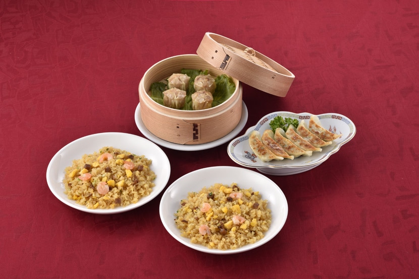 | 内容量 | 餃子120g(6個入)×1、貝柱入焼売120g(4個入)×1、ふっくら五目炒飯(200g×2)×1 |
