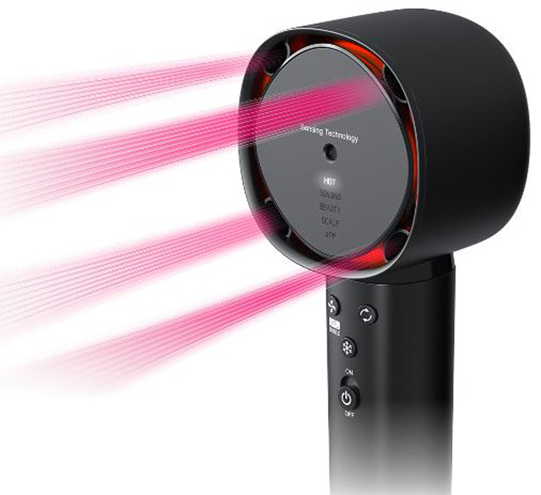 スピーディな風が周辺の空気を巻き込みより多くの風を髪に届けます。