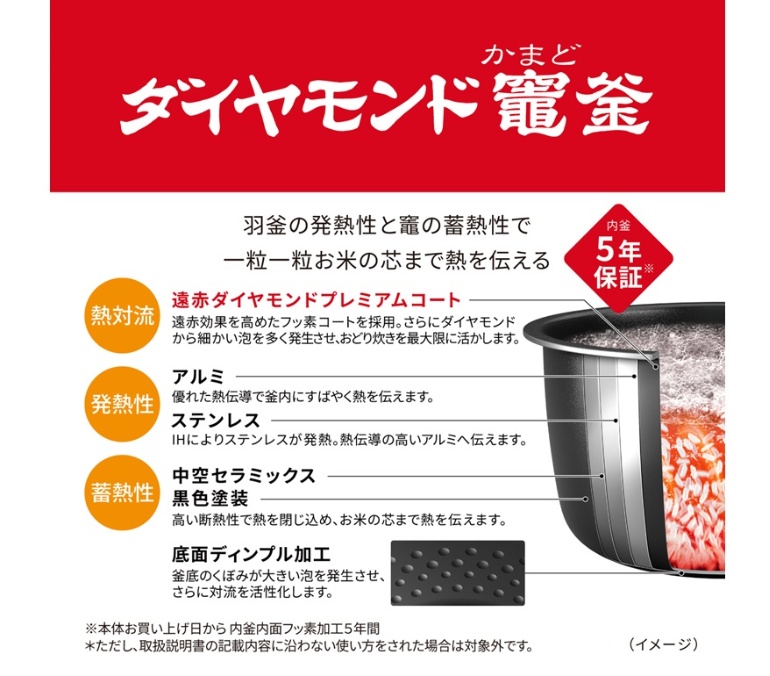 発熱性と蓄熱性に優れた「ダイヤモンド竈釜」