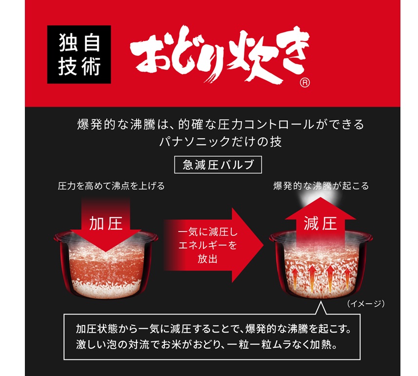 独自の圧力技術「おどり炊き」 でふっくら甘みのあるごはんに