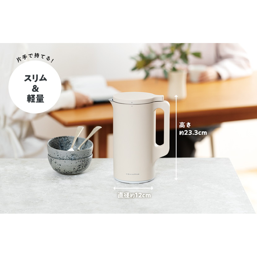 場所を取らないスリムサイズでインテリアにすっとなじみ、キッチンはもちろん卓上でも使いやすいデザインです。