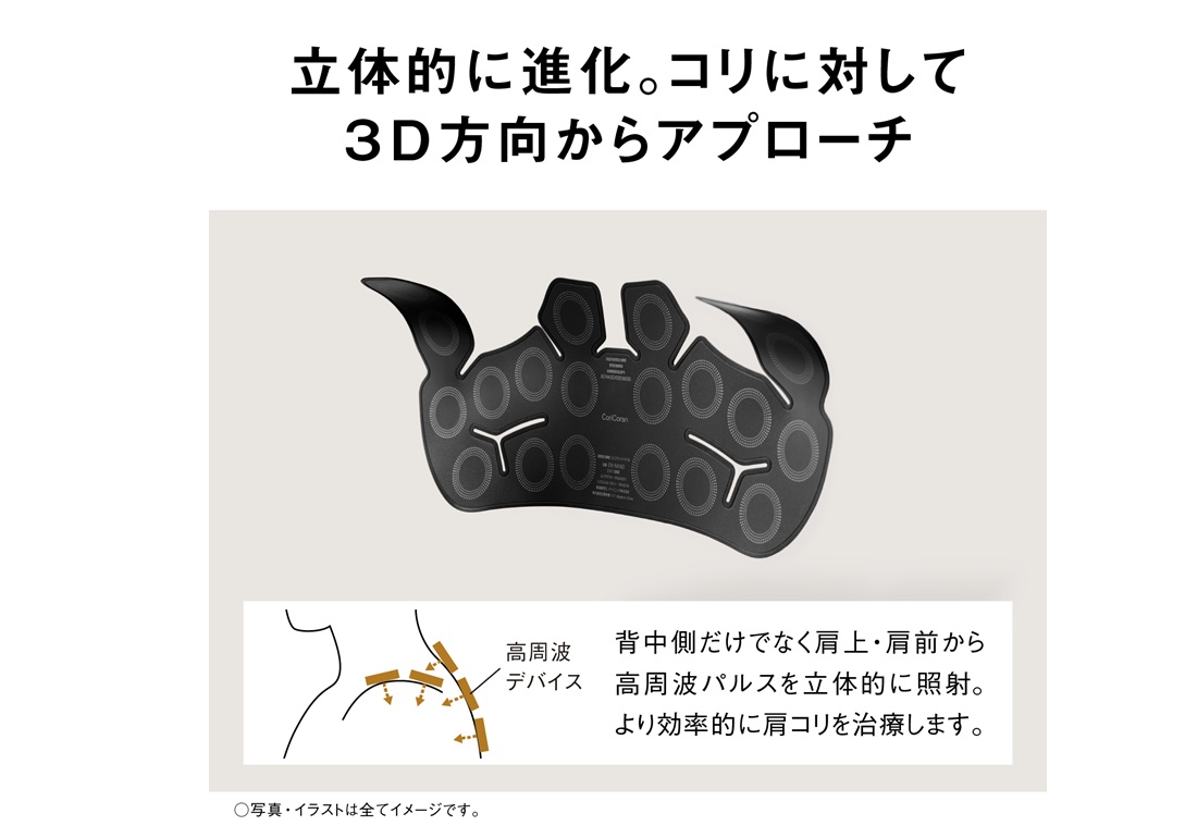 シリーズ最多(※1)の高周波デバイス20個内蔵。肩まわり全体のコリを、より広範囲に治療