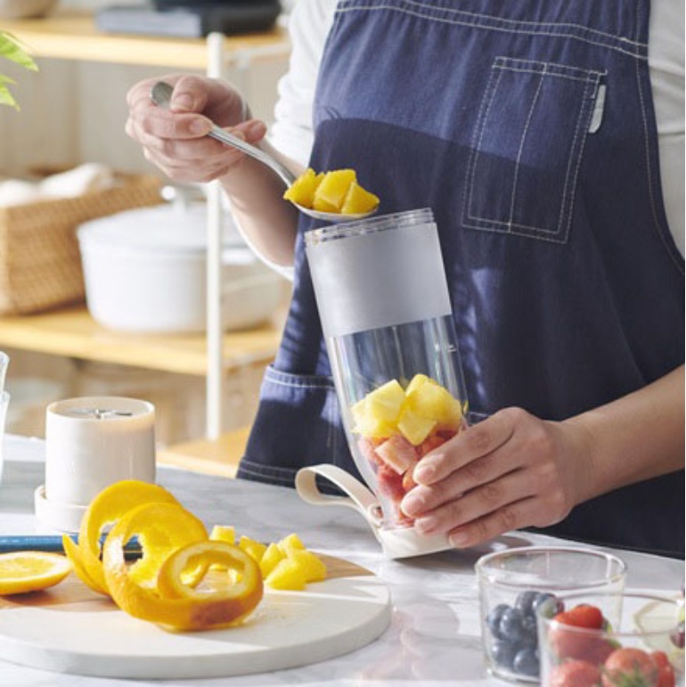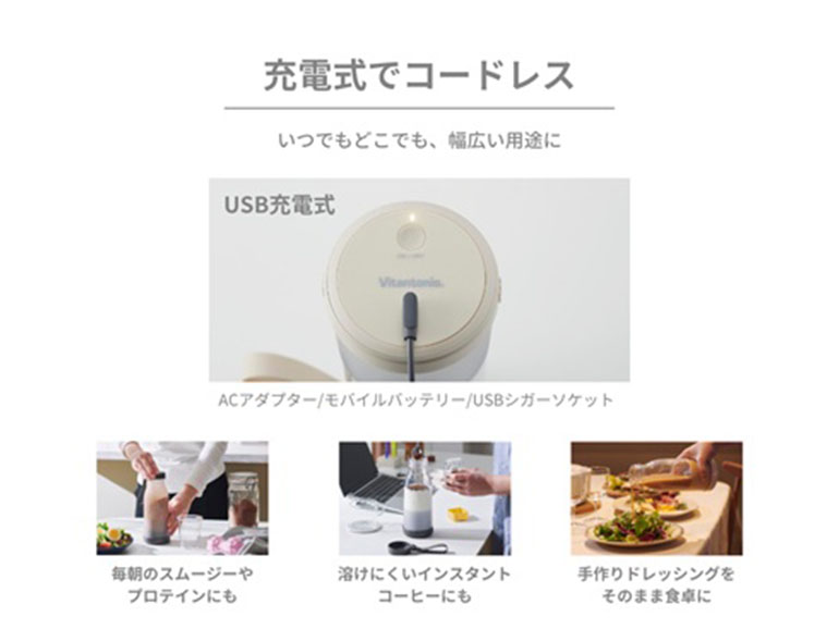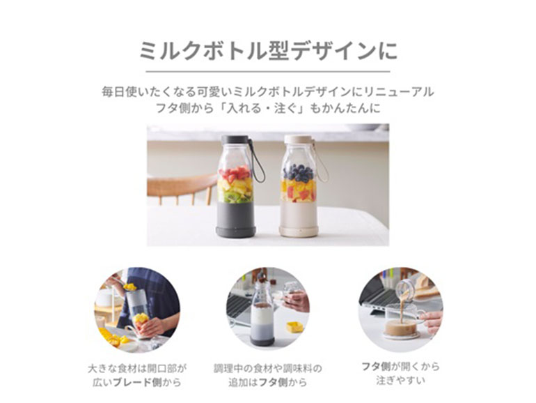 インテリア雑貨のようなレトロかわいい「ミルクボトル型」のコードレスブレンダー。