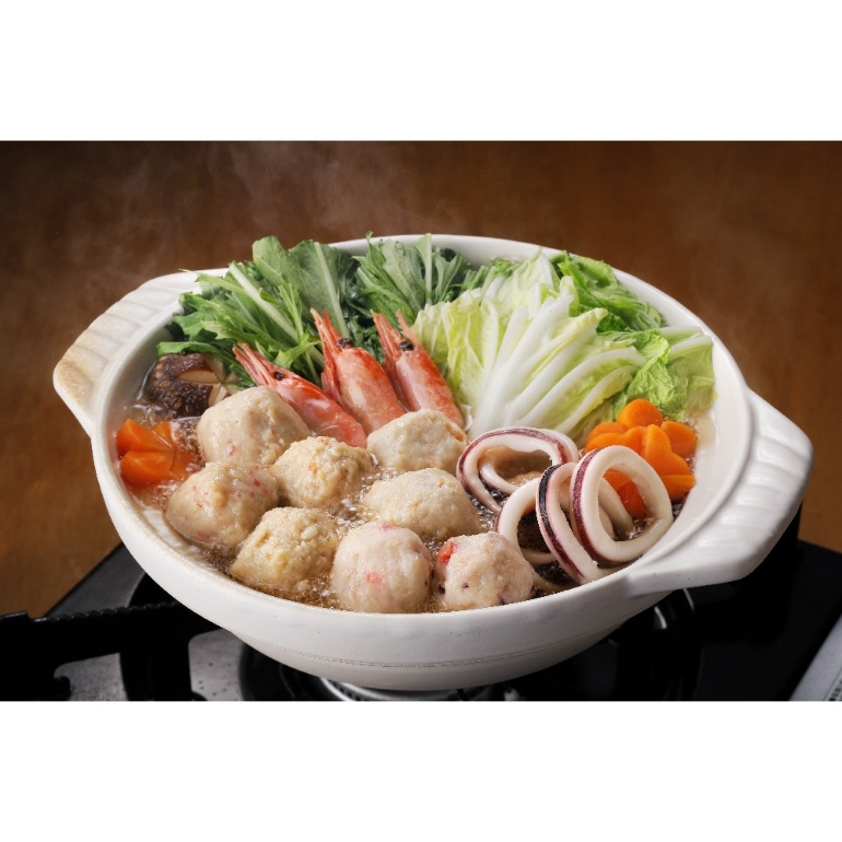 | 内容量 | かに入つみれ×4個、えび入つみれ×4個、とりごぼうつみれ×4個、たこ入つみれ×6個、ボイル海老×6尾、ボイル帆立×3個、ツボ抜きいか100g×1尾、冷凍うどん250g×1玉、たれ(濃縮:醤油仕立て)50ml×2袋 |