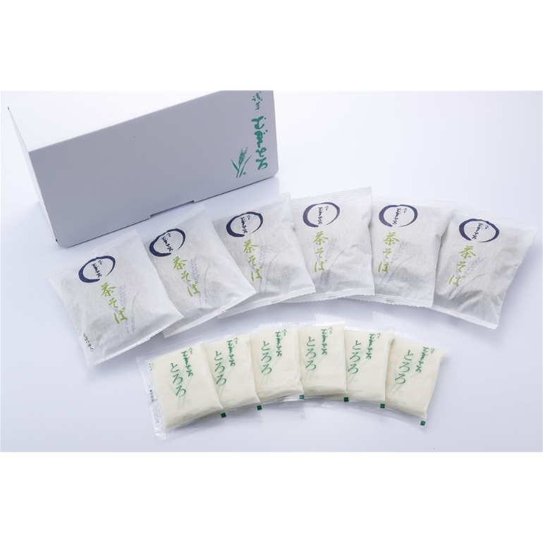 | 内容量 | 茶そば(乾麺90g、つゆ27.5g)、とろろ50g×各6 |