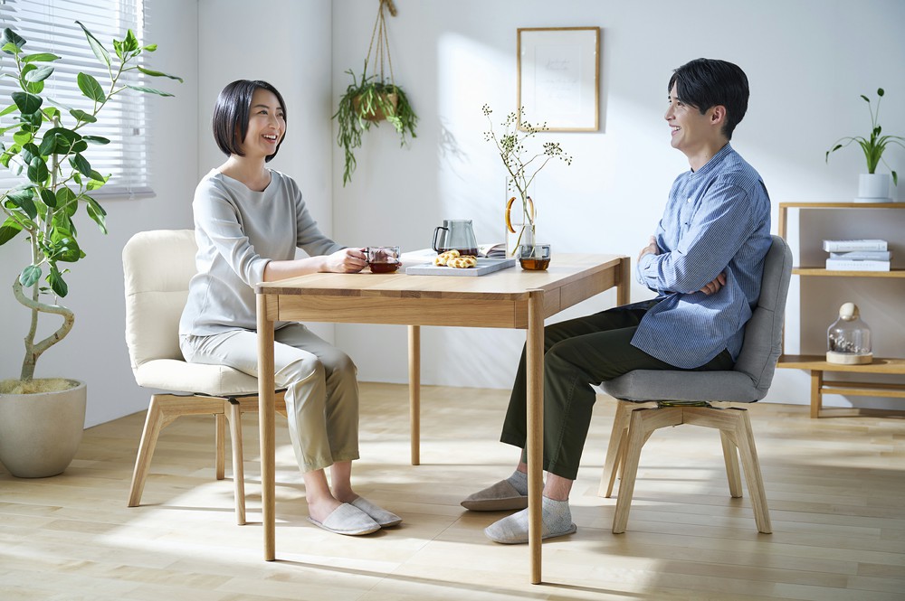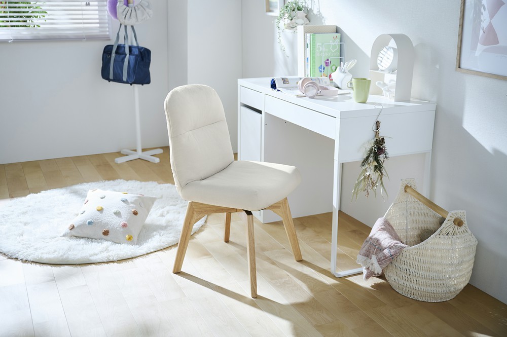 緩やかにカーブした座面が、座った時に身体を包み込むように支えてくれます。