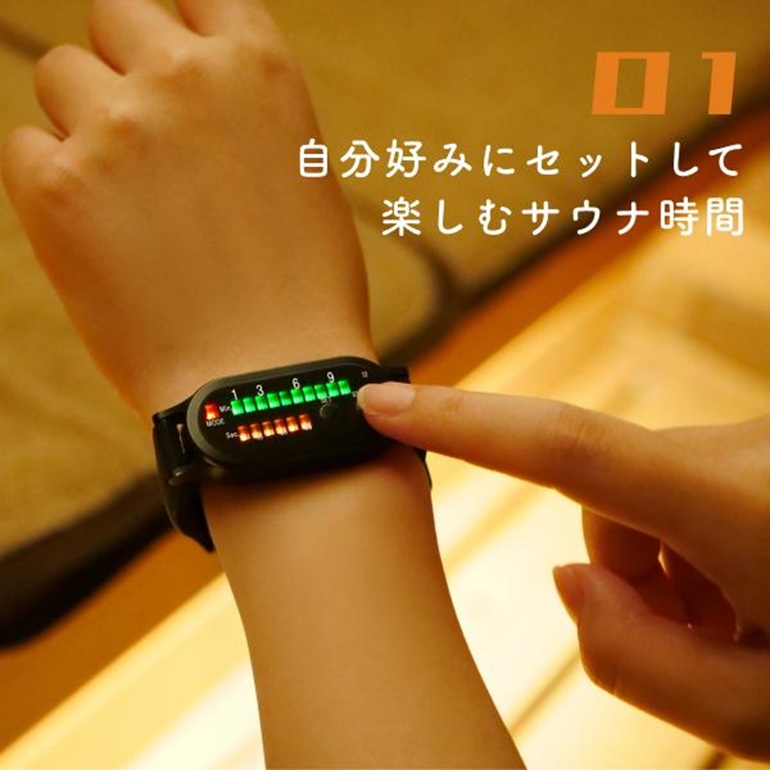 | その他詳細 4 | 〇サウナ・水風呂・休憩・カウントアップの4つのモード 〇充電時間:約1時間 〇使用温度範囲:0℃~100℃、防水(IPX7) 〇手首周りの長さ15~21cm |