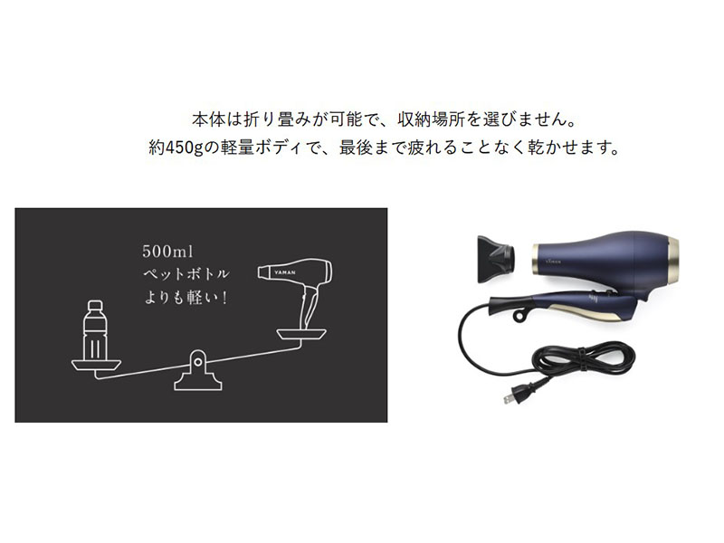 軽量・コンパクト設計でストレスフリーなヘアドライを