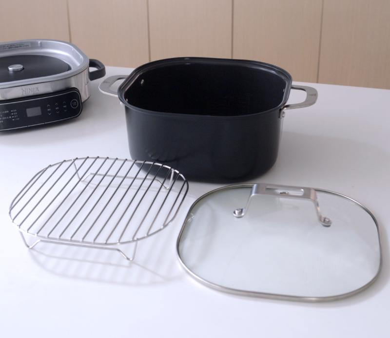 | サイズ/寸法 | 製品サイズ (高さ x 幅 x 奥行)(本体・鍋・ガラス蓋):H 254 x W 354× D 325 mm 電源コードの長さ:約1.8m |