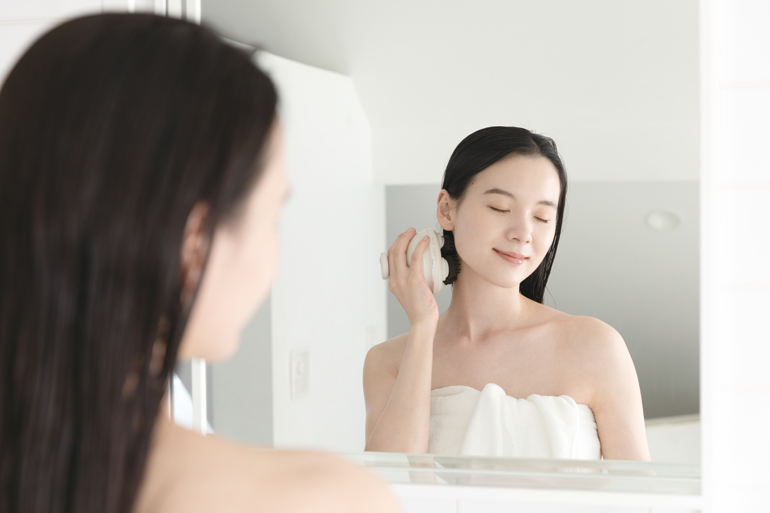 ・もみブラシ…全身をつまんで動かす(頭・表情リフレッシュ/頭筋などを柔軟にする/肩・デコルテまわりに)