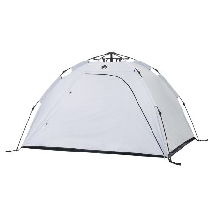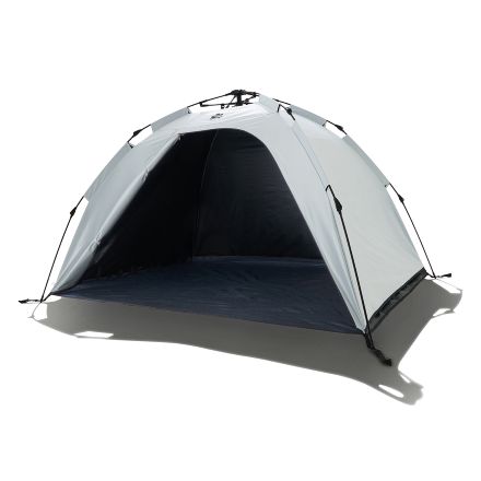 フレーム構造を工夫した新型Q-TOP SYSTEM搭載で、設営・撤収が従来モデルよりもさらにスピーディー&簡単になりました。UVカット率99.9%以上、遮光率100%のソーラーブロック生地を採用しています。フロアシートの3辺を立ち上げることで室内に砂や土が入りにくく、心地よい風を通す風抜け構造により室内に熱気がこもりにくくなっています。