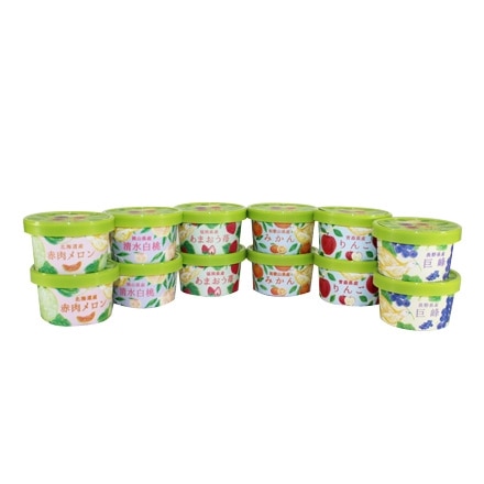 | 内容量 | 福岡あまおう苺アイス、北海道赤肉メロンアイス、岡山清水白桃アイス、青森りんごアイス、長野巨峰アイス、和歌山みかんアイス:各70ml×2 |