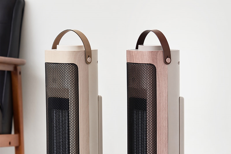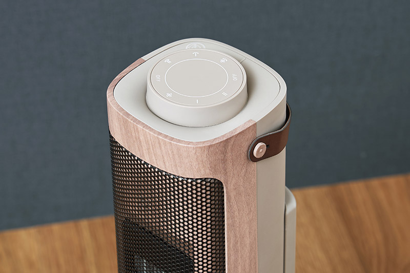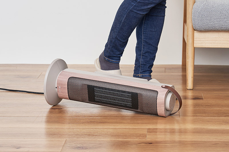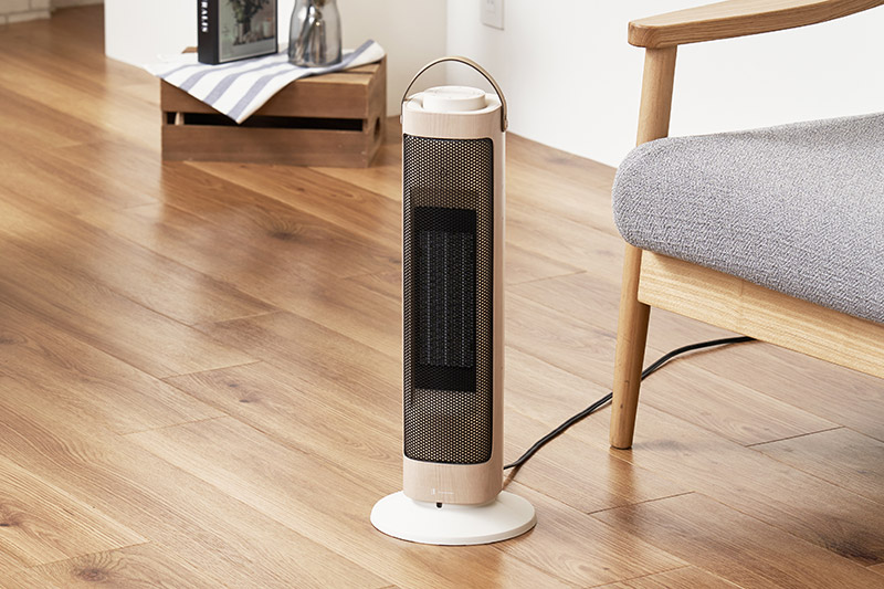 木目柄とレザー調ハンドルがおしゃれな、見せ置きできるヒーター。リアルウッドを彷彿させる美しい木目柄は、高精細な意匠表現技術をもつ大日本印刷株式会社との協業で実現しました。自動首振り機能と1200Wのハイパワーで、お部屋をしっかり暖めます。送風モード搭載のため、春から初夏は室内の空気循環に利用するなど、通年使える点も魅力。インテリア性と機能性にこだわる方におすすめの1台です。