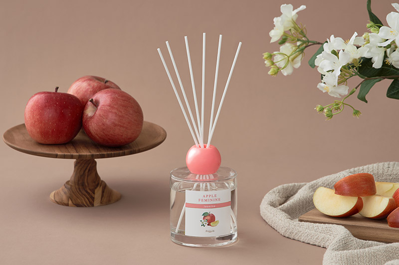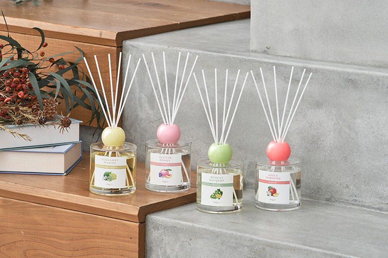 果実のジューシーさをベースに様々な花の香りを掛け合わせ、甘いながらも華やかで上品な香りを楽しめるリードディフューザー。それぞれのフルーツの香りに寄り添うフローラル香の組み合わせで、果実味を感じながらも奥行きのある仕上がりに。置くだけでお部屋の印象が変わるような、みずみずしい香りを届けます。フルーツのフォルムからインスパイアされたボトルデザインは、コロンと丸い形のキャップがキュートでギフトにもおすすめです。