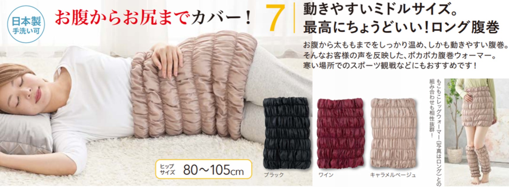 お腹・お尻から太ももまでをしっかりと温めてくれて、かつ動きやすい腹巻が欲しい、というお客様の声を反映したロング腹巻です。