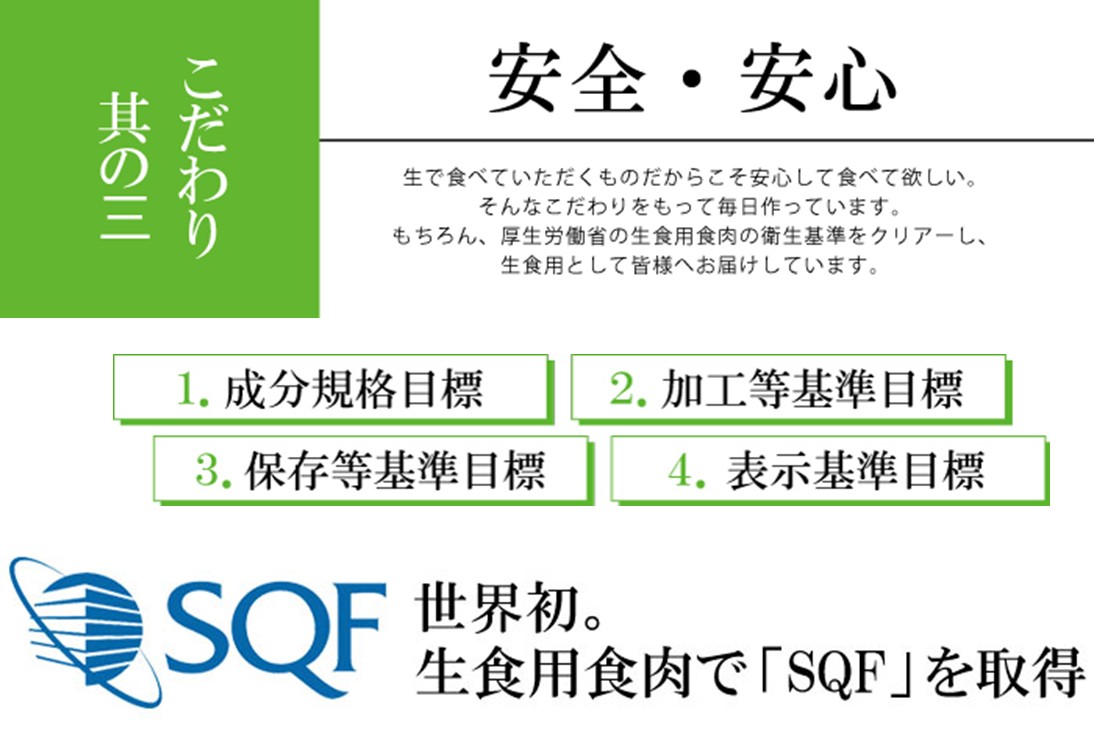 上記4つの目標が定められています。”鮮馬刺し”はこれらすべてをクリアーした安全な馬刺しです。