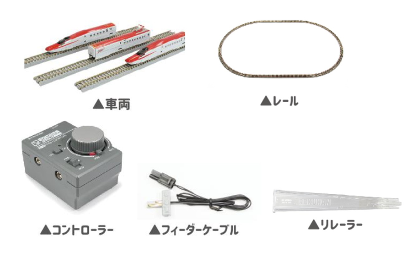 | 内容量 | 0系新幹線 初期型 ひかり×4両/曲線レール R195-30°x12本/直線レール L220x4本/リレーラー×1本/ トレインコントローラーRC-02×1個/フィーダーケーブル×1/ラベル×1枚/取扱説明書×1枚 |