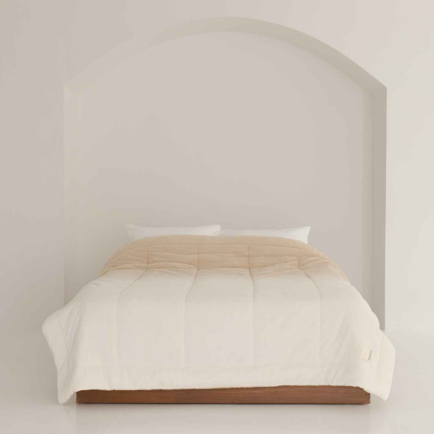nishikawa【西川】hauu もちもちブランケット(リバーシブル・吸湿発熱タイプ) 2枚合わせ毛布 ベージュ