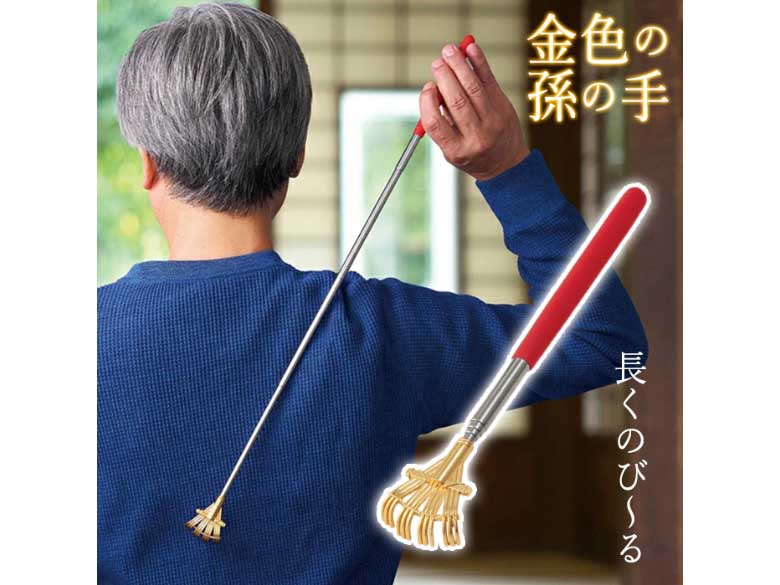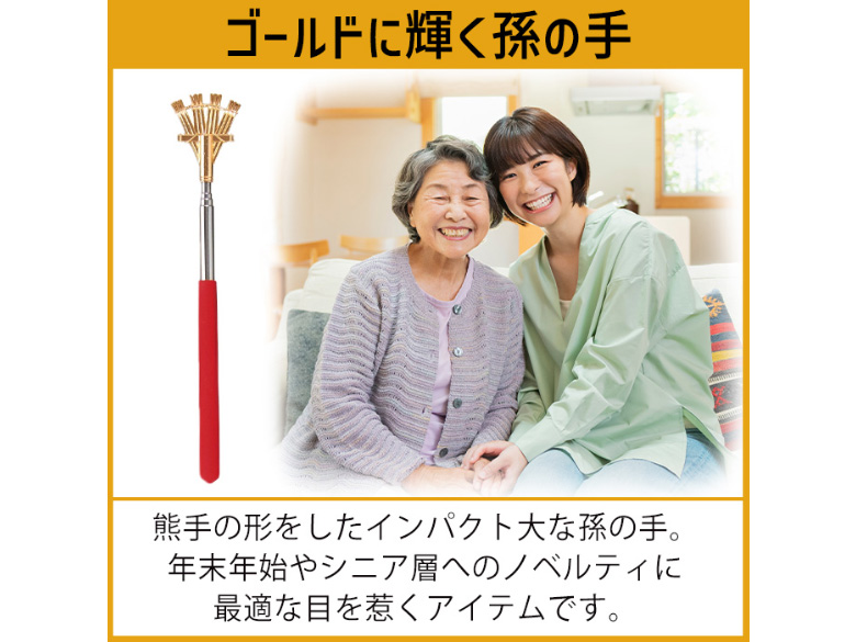 熊手の形をしたインパクト大なゴールドに輝く孫の手!