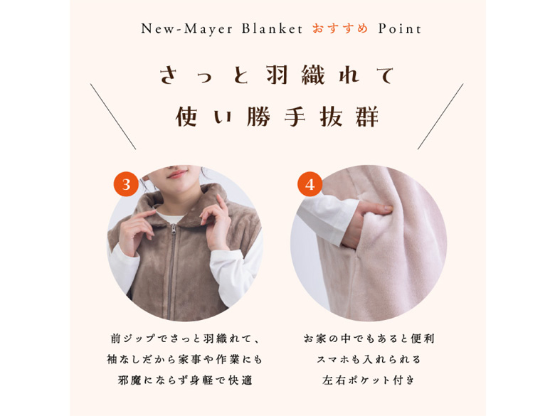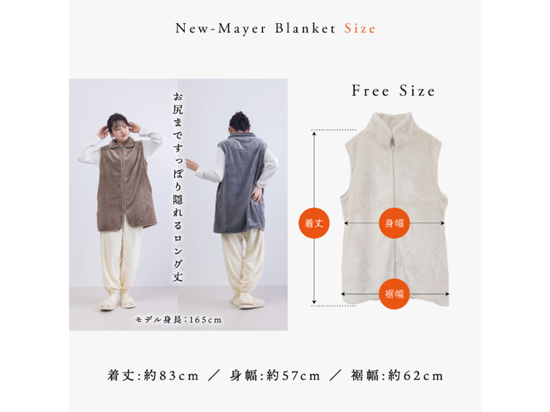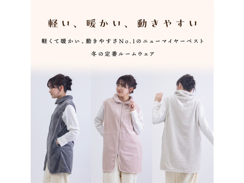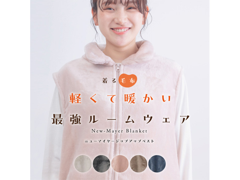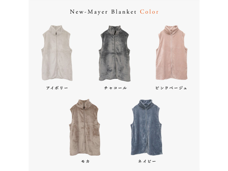 ニューマイヤー ジップアップ ベスト 着る毛布 チャコール