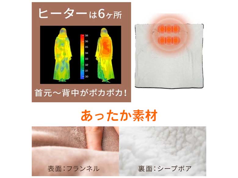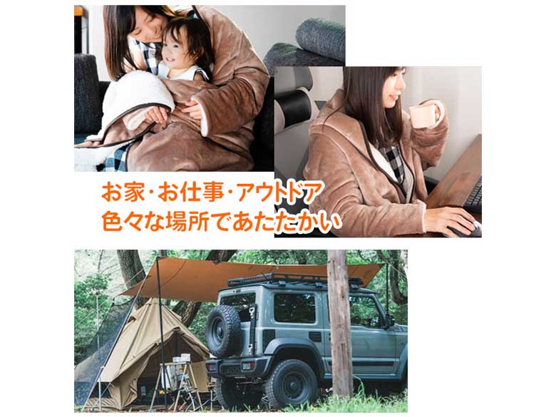 全身あったか着る毛布。大きめサイズでお家時間やアウトドアもほっこり。ヒーターは3段階。