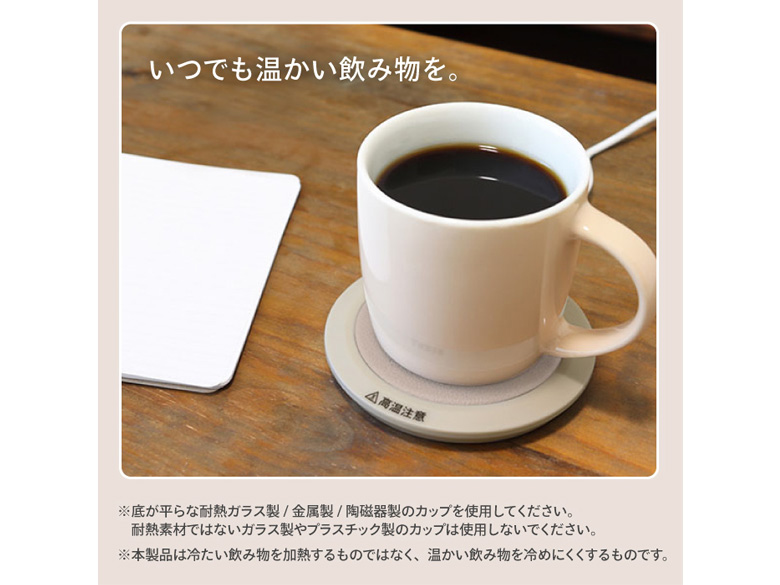 ※本製品は冷たい飲み物を加熱するものではなく、温かい飲み物を冷めにくくするものです。