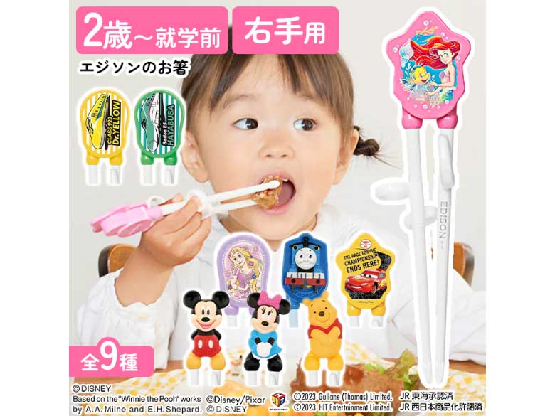 好きなキャラクターと一緒に食事ができて、正しい持ち方も身に着けられるエジソンのお箸。