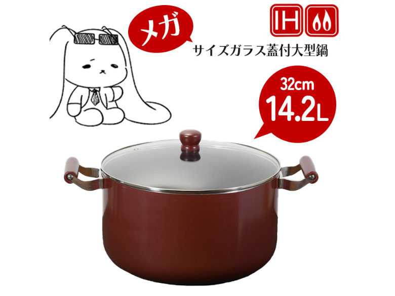 メガサイズ ガラス蓋付 大型鍋 深型 32cm パール金属