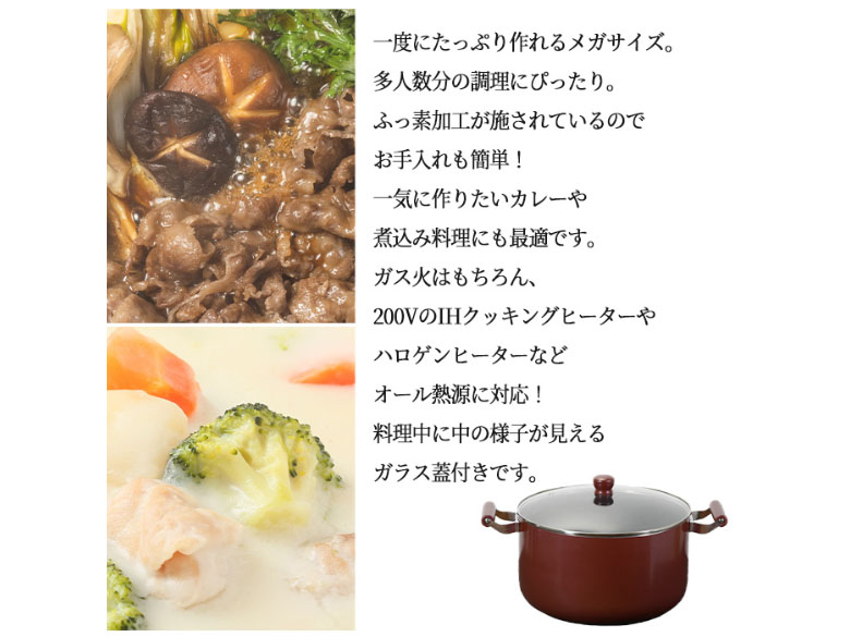 ※大型鍋のため、底面のみを加熱するIHコンロでご使用の場合、沸騰するのに時間がかかります。