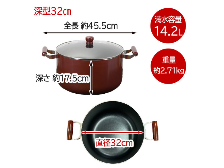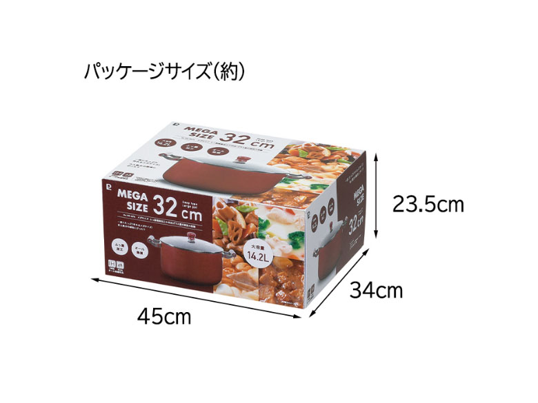 | サイズ/寸法 | 鍋直径 32cm 深さ 17.5cm 商品サイズ 幅45×奥行34×高さ23.5cm |