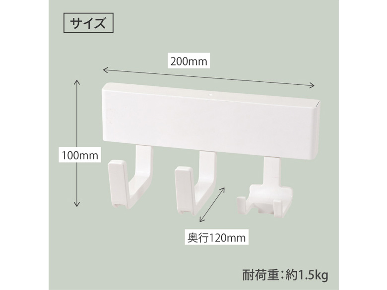 | サイズ/寸法 | 幅200mm×高さ100mm×奥行120mm(※フック含む) |