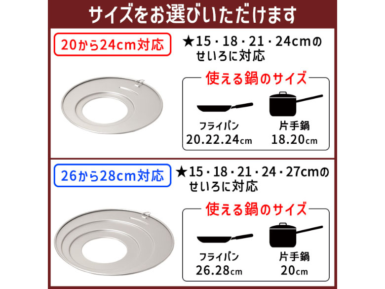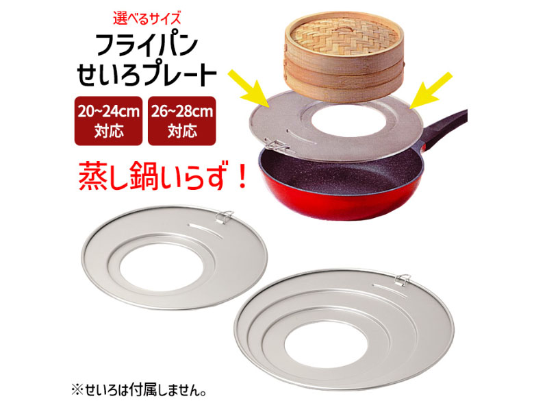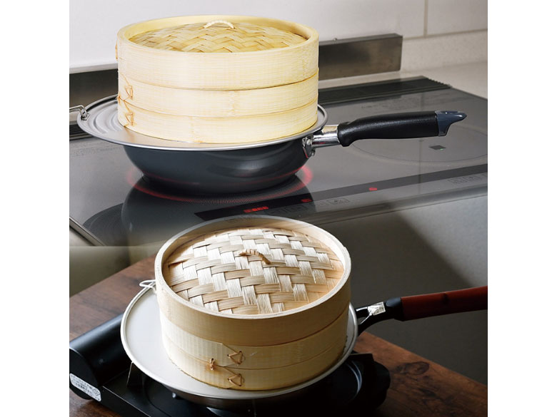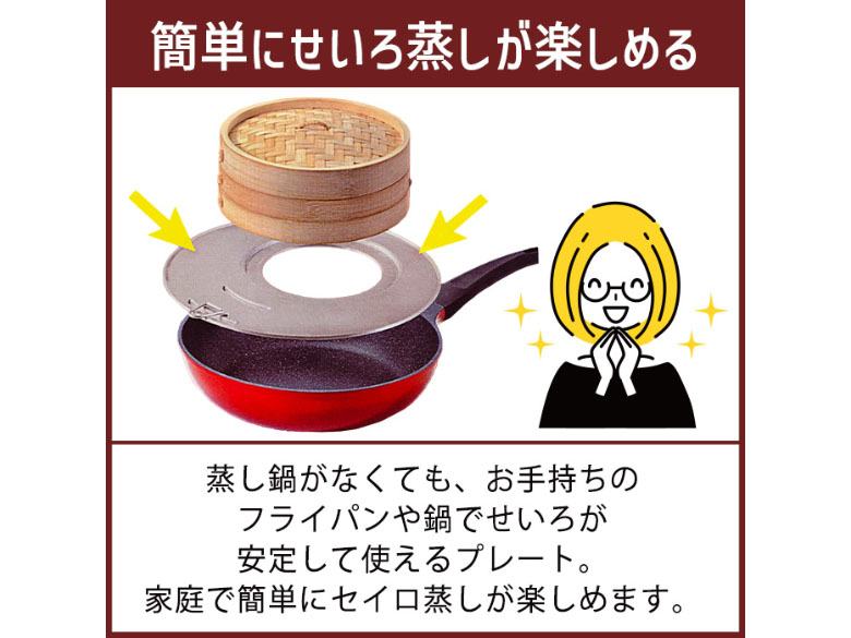蒸し鍋がなくても、ご家庭でお使いの鍋やフライパンにセットするだけで簡単にセイロ蒸しが楽しめます。