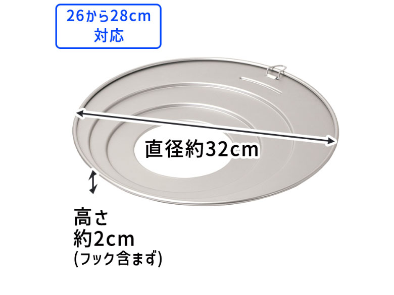 | サイズ/寸法 | 26から28cm対応 / 外径32×高さ2cm |