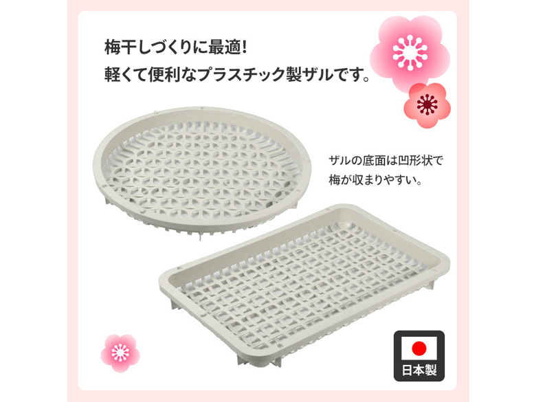 梅を均等に並べて、梅干しが作れる!軽くて便利なプラスチック製ザルです。
