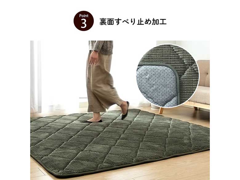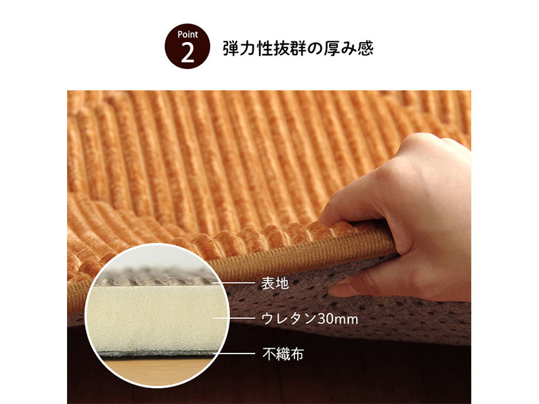 | 原材料/素材/材質 | 表地=ポリエステル100%(フランネル) 中材=ウレタン30mm 裏地=不織布(滑りにくい加工) |