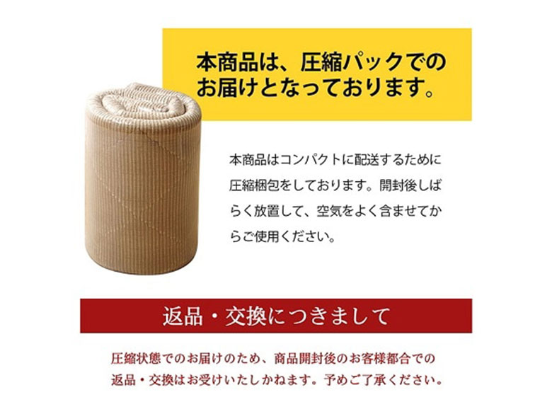 | 注意事項/留意事項 | ※ 本商品は圧縮梱包でのお届けとなります。 ※ 復元に1週間程度かかる場合がございます。(環境によって復元時間にバラつきがあります。) ※ 商品開封後は返品を承ることができませんので、あらかじめご了承ください。 ※ 掲載写真は表記サイズと異なる場合がございます。 ※ 画面上のカラーはご使用ブラウザやモニターの設定により、実物とは若干異なる場合がございます。あらかじめご了承の上、ご注文をお願いいたします。 ※開封後の返品は承っておりません。 |