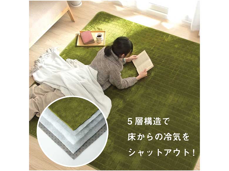 イケヒコ レイヤー ラグ 185×185cm グリーン