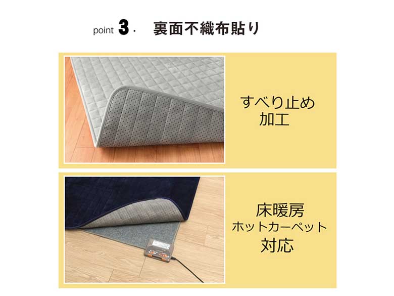 床暖房・ホットカーペットにも対応しています。こたつの敷布団としてもご使用いただけます。